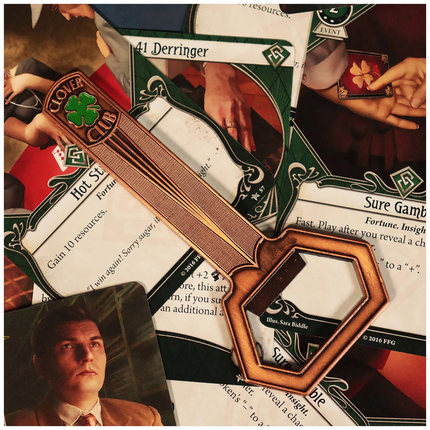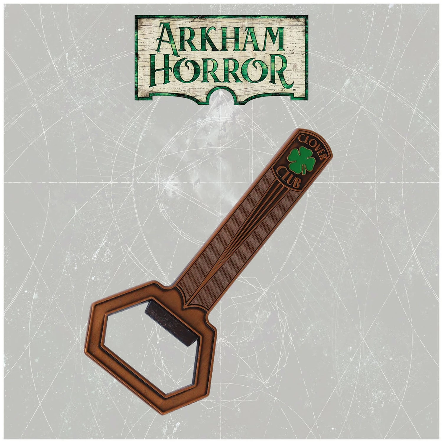 This premium bottle opener by Fanattik is from Clover Club within Arkham Horror. Magnetic for easy storage on the fridge door after use.