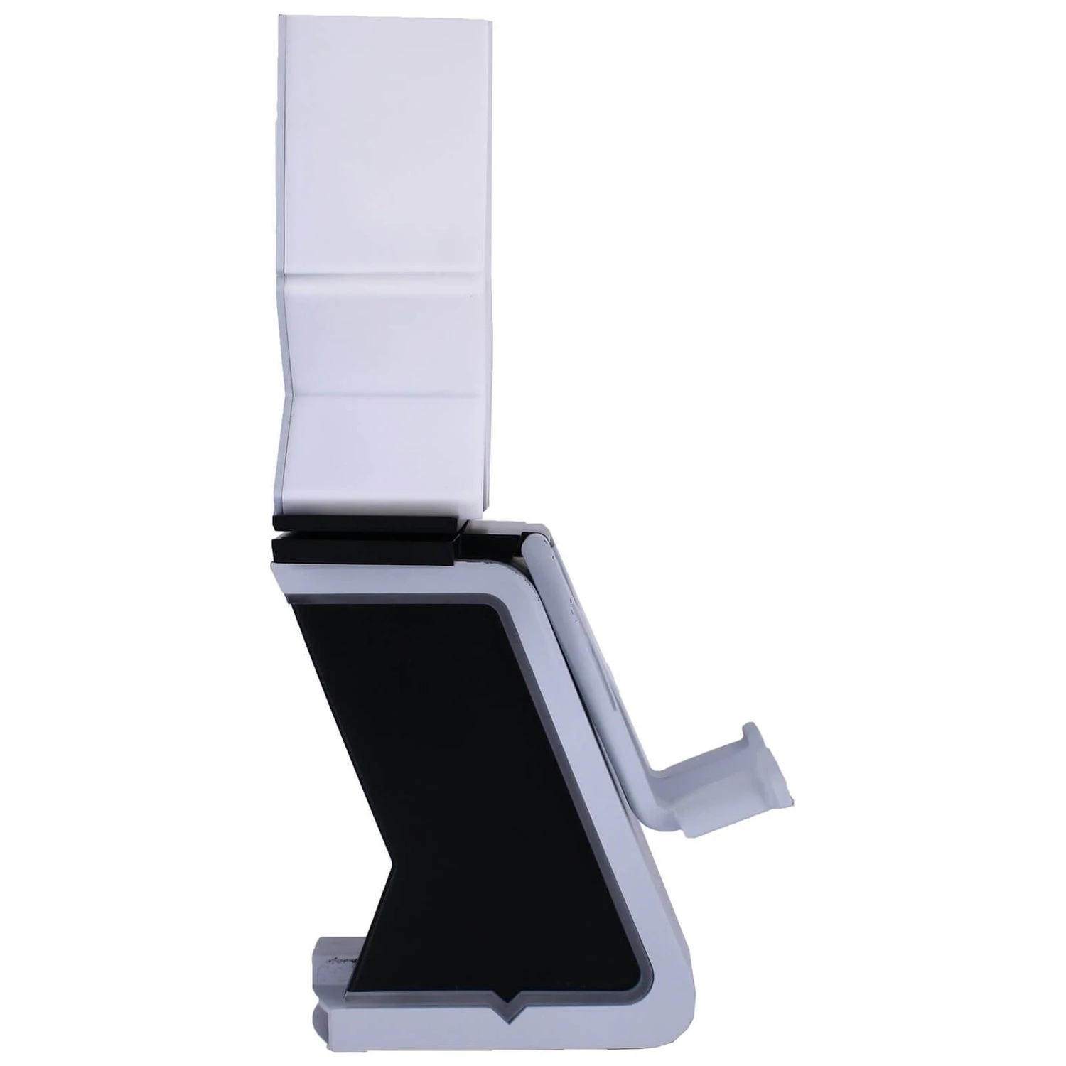 The new-era of light-up charging stands, perfect for the PS5 or XboxS/X controllers Compatible with the SP2 Powerstand headphone rest Patented Rotating Entertainment Support Tray (R.E.S.T.) system to hold your controllers, phones, and other items White column with blue LED-lit edge, detailed with the PlayStation symbols lit up in blue Based on the PlayStation Symbols 1.2M / 4FT Type C Cable Provided.