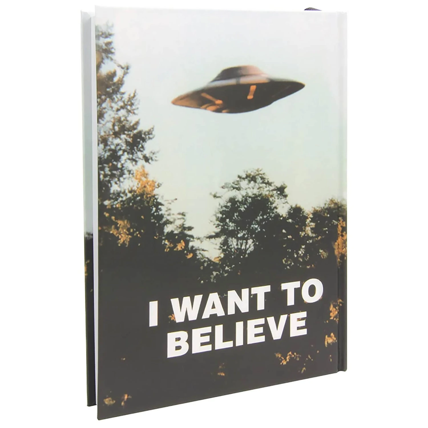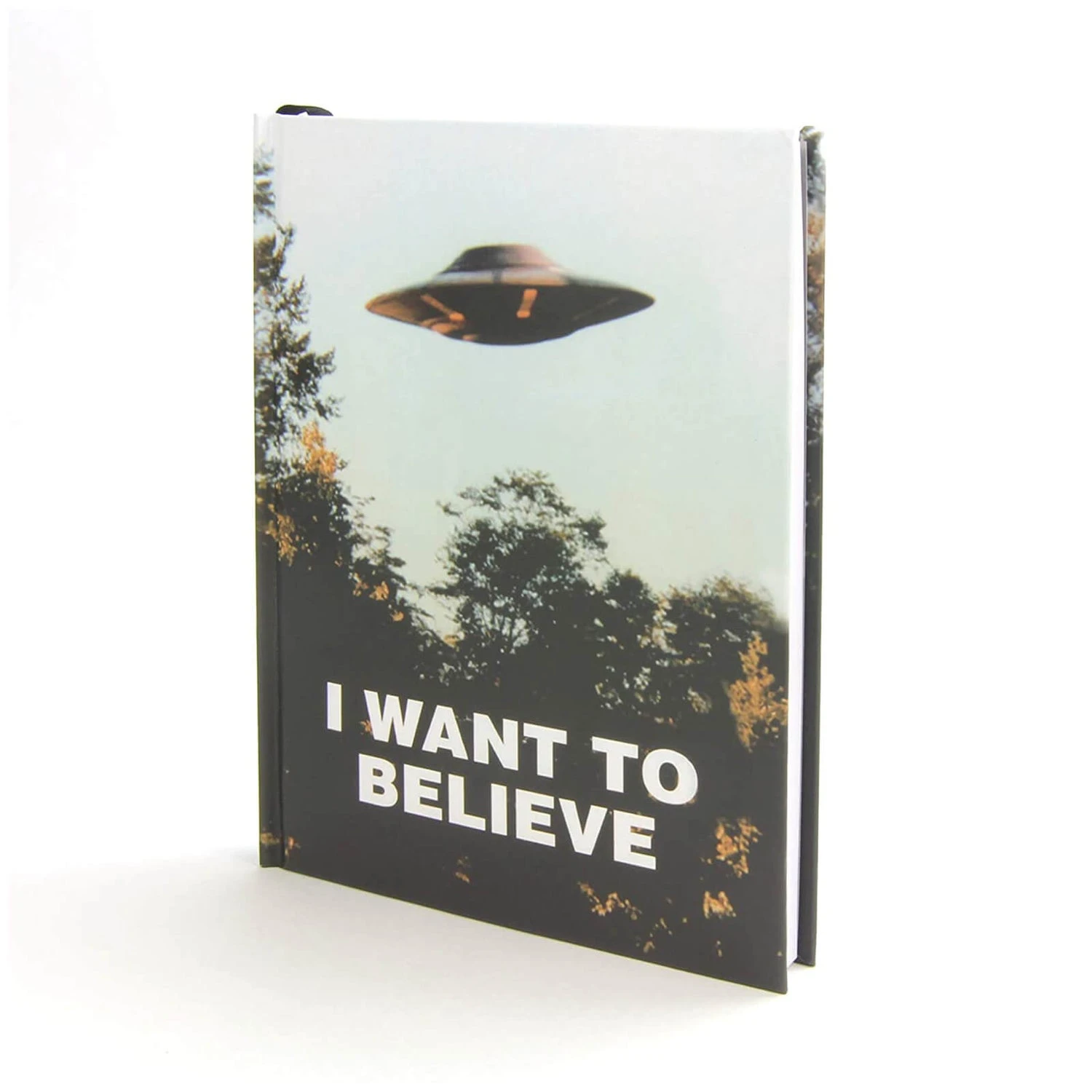 The X Files I Want To Believe journal is a hardcover journal with 232 interior lined pages. It has themed printing on every page, character artwork on both inside covers and a ribbon bookmark.
