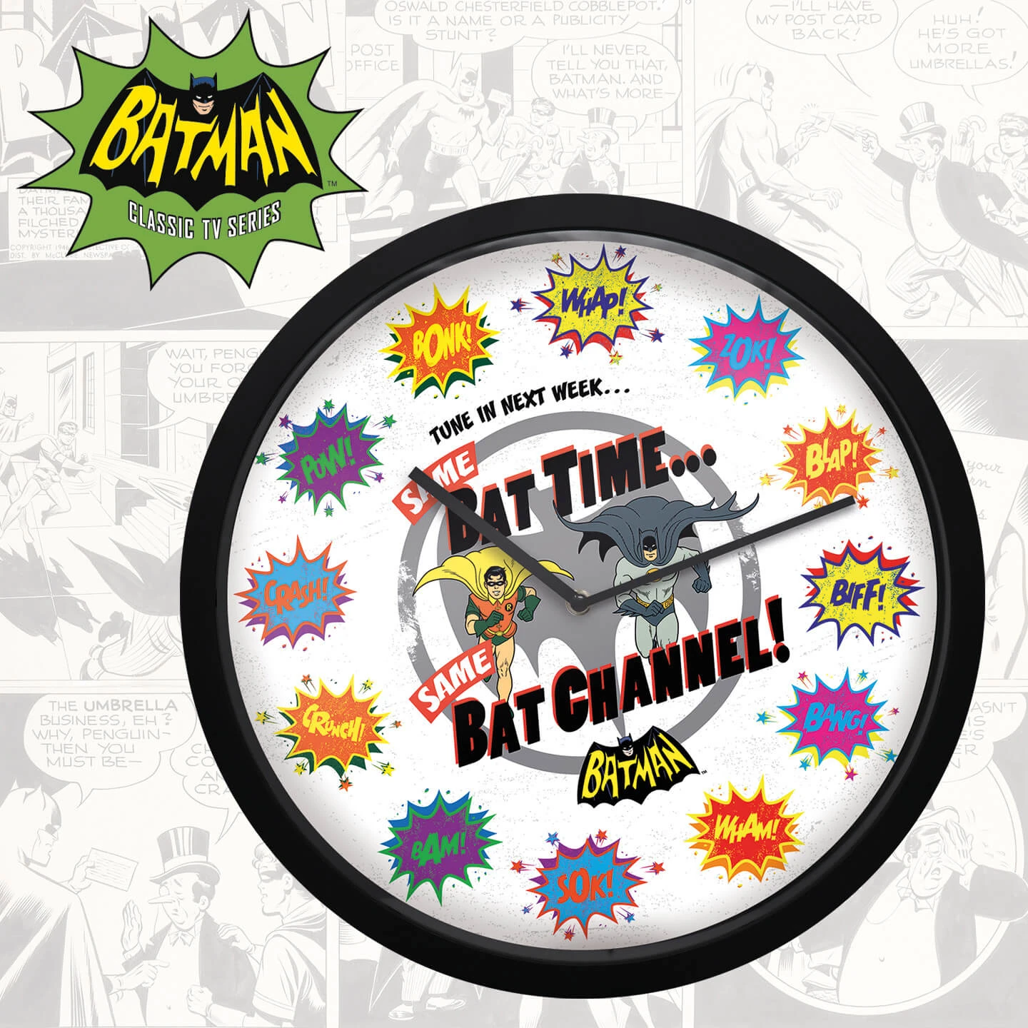 30.5cm wall clock with glass face and aluminium hands by Fanattik. Closed display box. A homage to the classic Batman series, this retro feel clock is ideal for any fan of the original series.