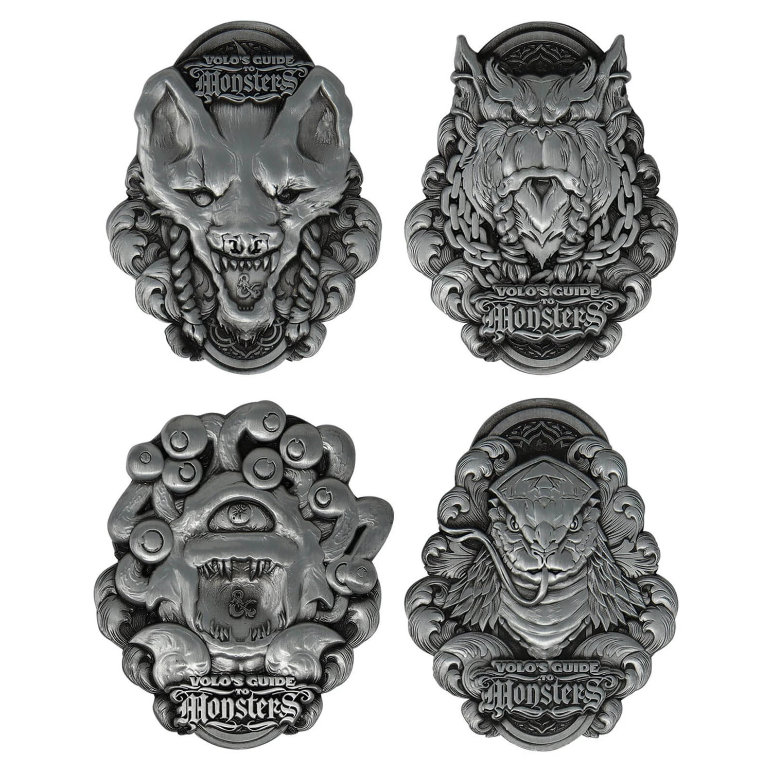 This premium box is limited to 5,000 worldwide. Each individually numbered box includes four heavily embosssed replica monster medallions from the Volo’s guide books.