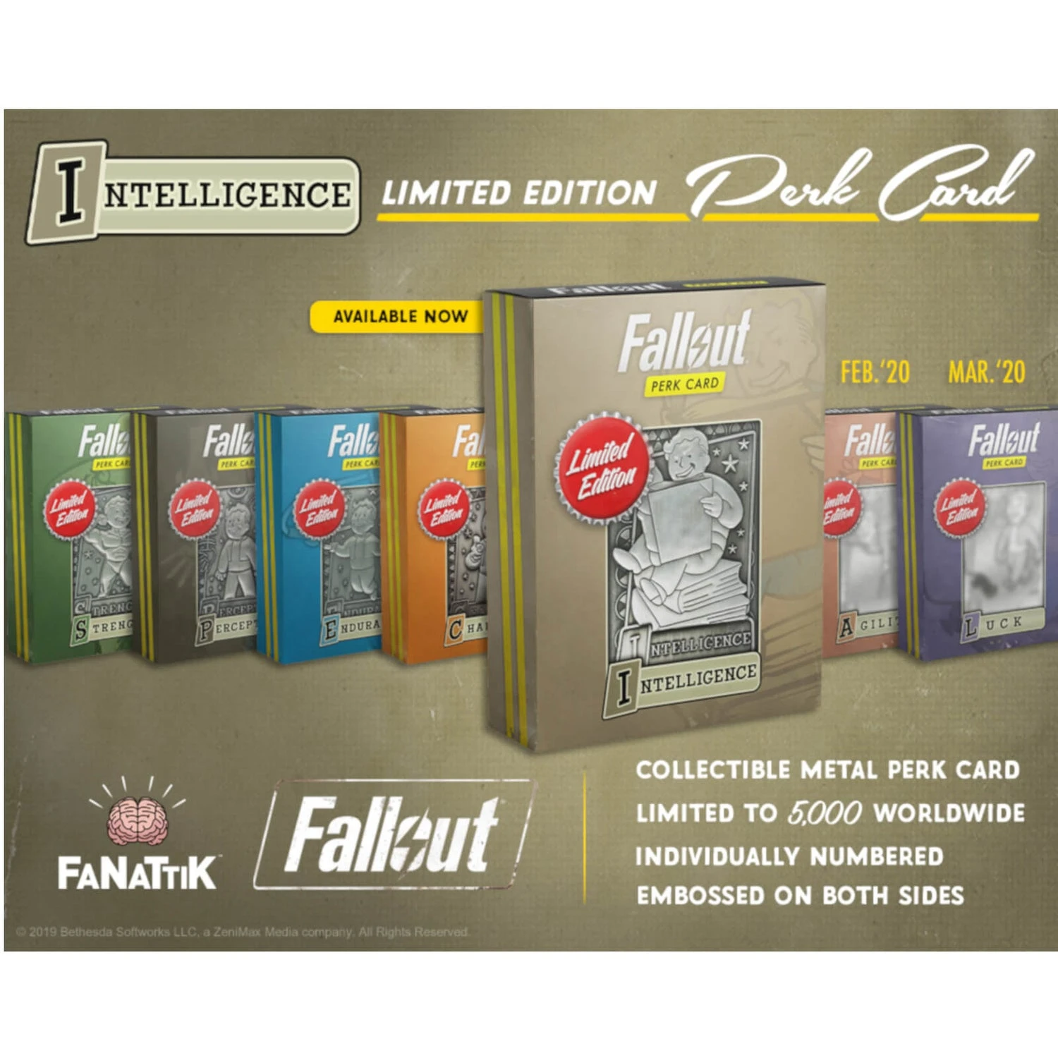 Own your very own replica perk card, this metal heavyweight card is highly detailed, embossed on both sides with a post-apocalyptic distressed finish. Limited to only 5,000 worldwide, each card is individually numbered. Venture out of your bunker and grab your very own Fallout collectible.