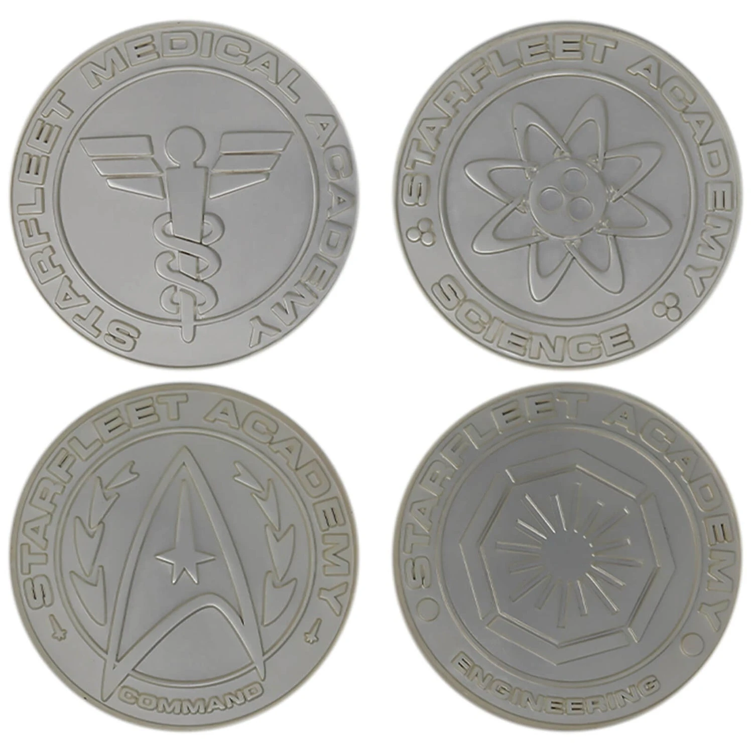 Support the Starfleet Academy with this Limited Edition Set of Division Medallions in .999 Silver Plating, featuring the Command, Science, Engineering and Medical Divisons. LLimited to 1,000 worldwide, this officially licensed collectible by Fanattik is individually numbered.