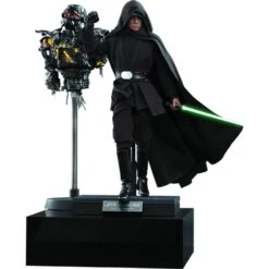 The highly-accurate Luke Skywalker collectible figure features a newly developed head sculpt with astonishing likeness, skillfully tailored Jedi outfit and cloak, a lightsaber with LED light-up function, a display base, and themed backdrop!