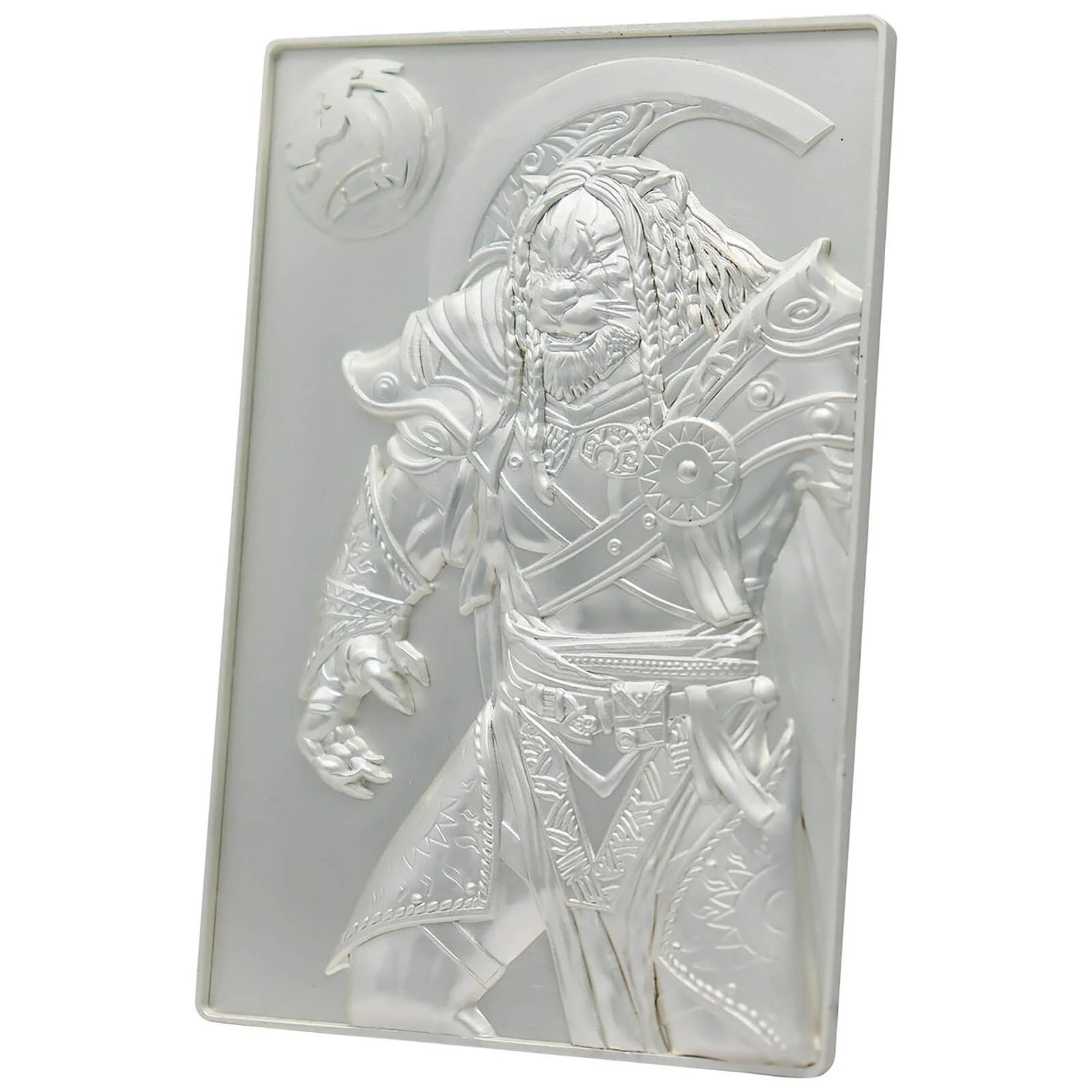 Featuring Ajani from Magic the Gathering, this .999 silver plated ingot is limited to 5,000 worldwide, individually numbered, heavily embossed and detailed. Supplied with a display stand within its presentation box.