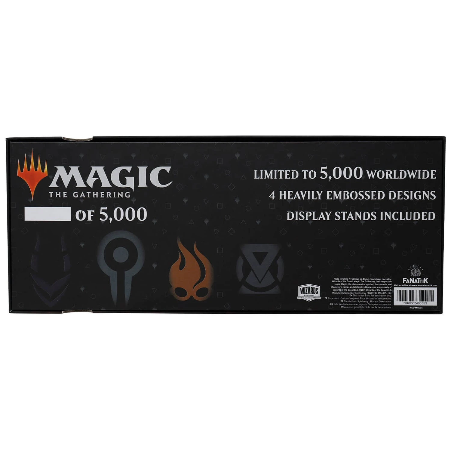 A set of four Planeswalker heavily embossed detailed medallions, each supplied with a display stand within the individually numbered presentation box. Limited to only 5,000 worldwide. Each medallion has a diameter of approx 65mm.
