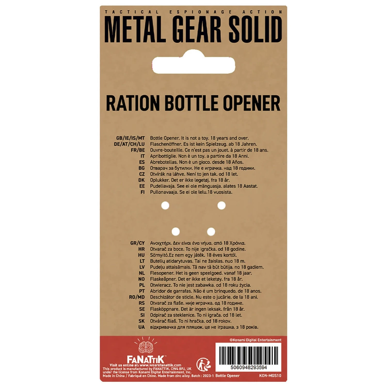 Rations equipped! As used in all the games as a healing item, this mighty bottle opener can be used to stay energised as your life hits zero. The heavy-duty premium bottle opener is equipped with a magnet to allow for easy storage in between uses as well as having a feature for twist top bottle opening.