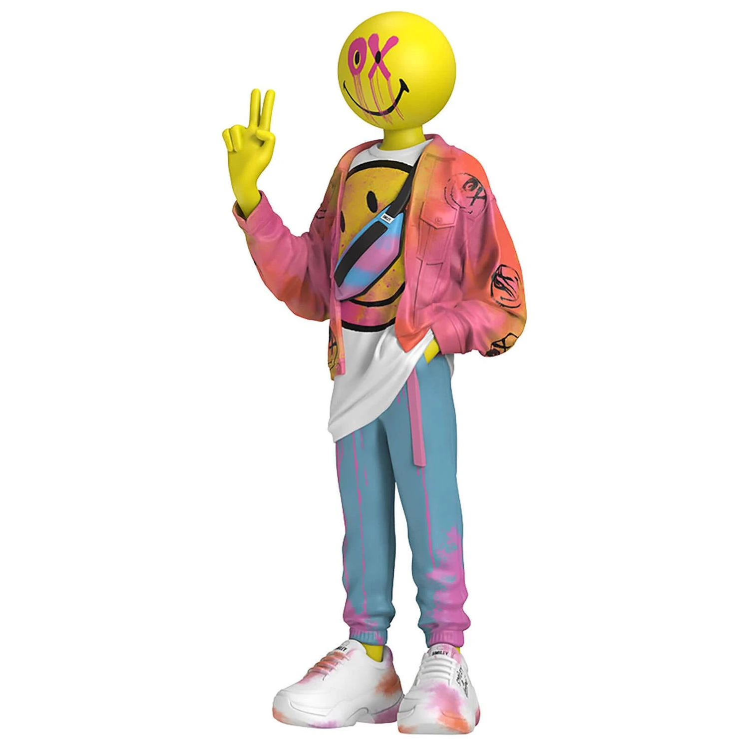 Sporting B.Smiley’s signature pose, the 12” collectible wears threads from the iconic André Saraiva X Smiley collaboration.