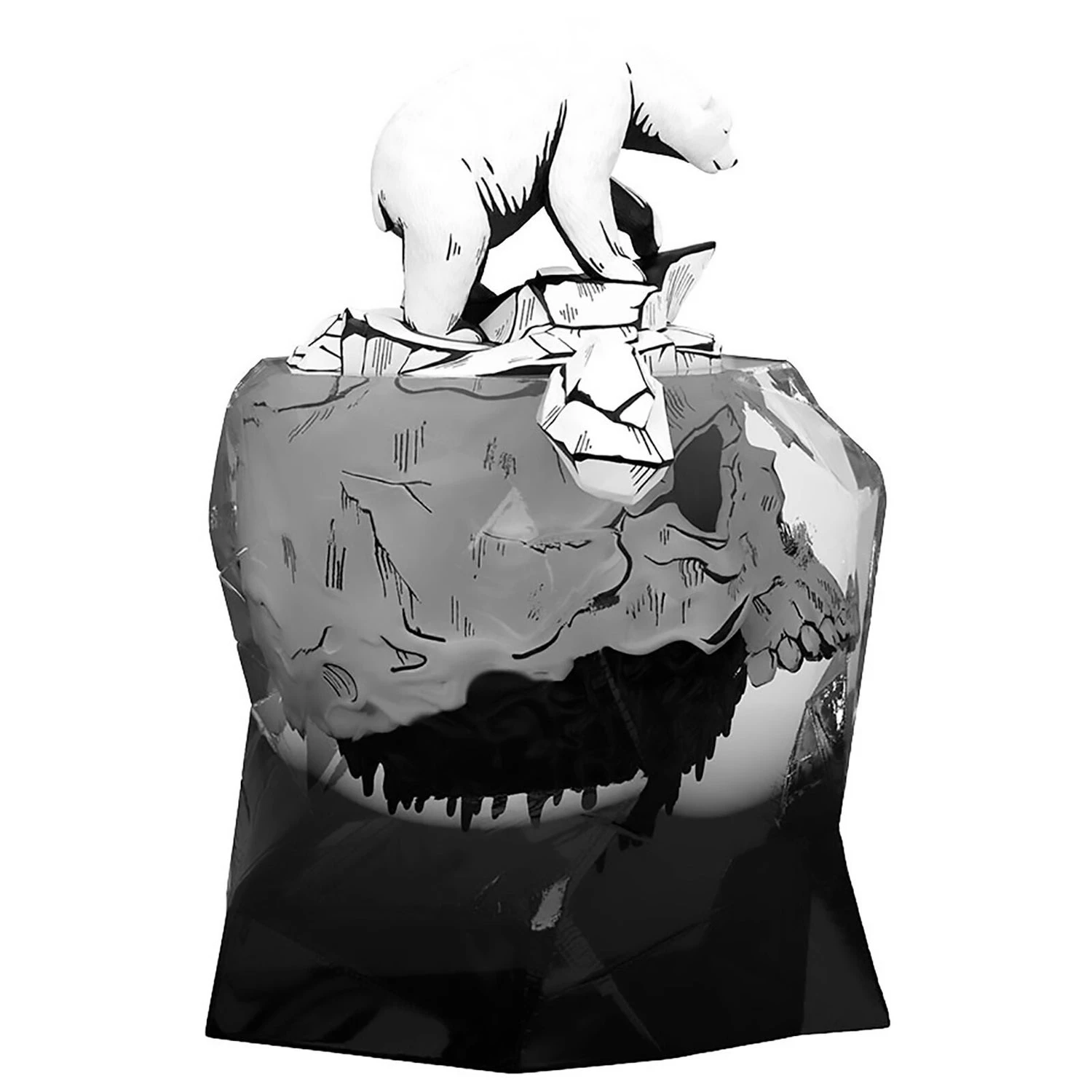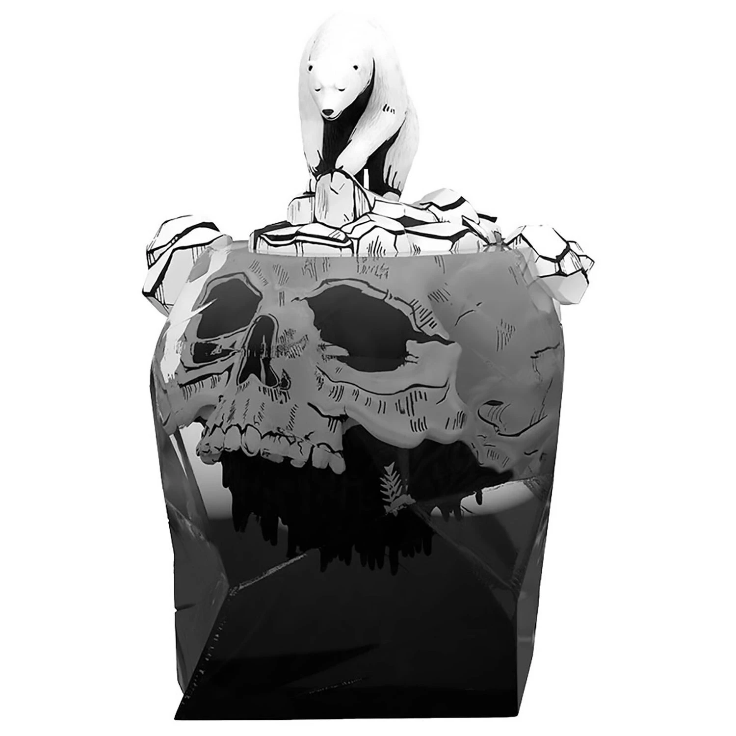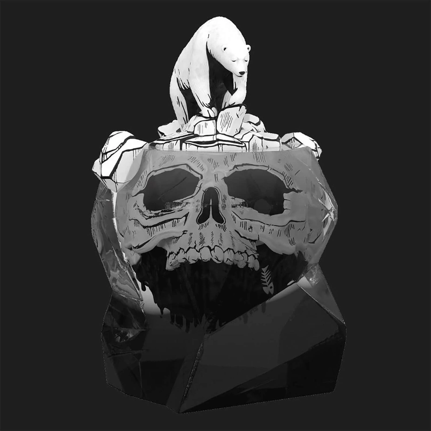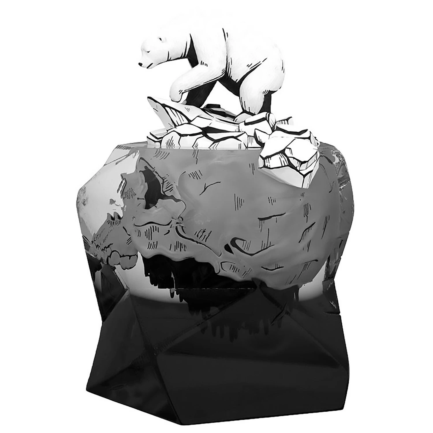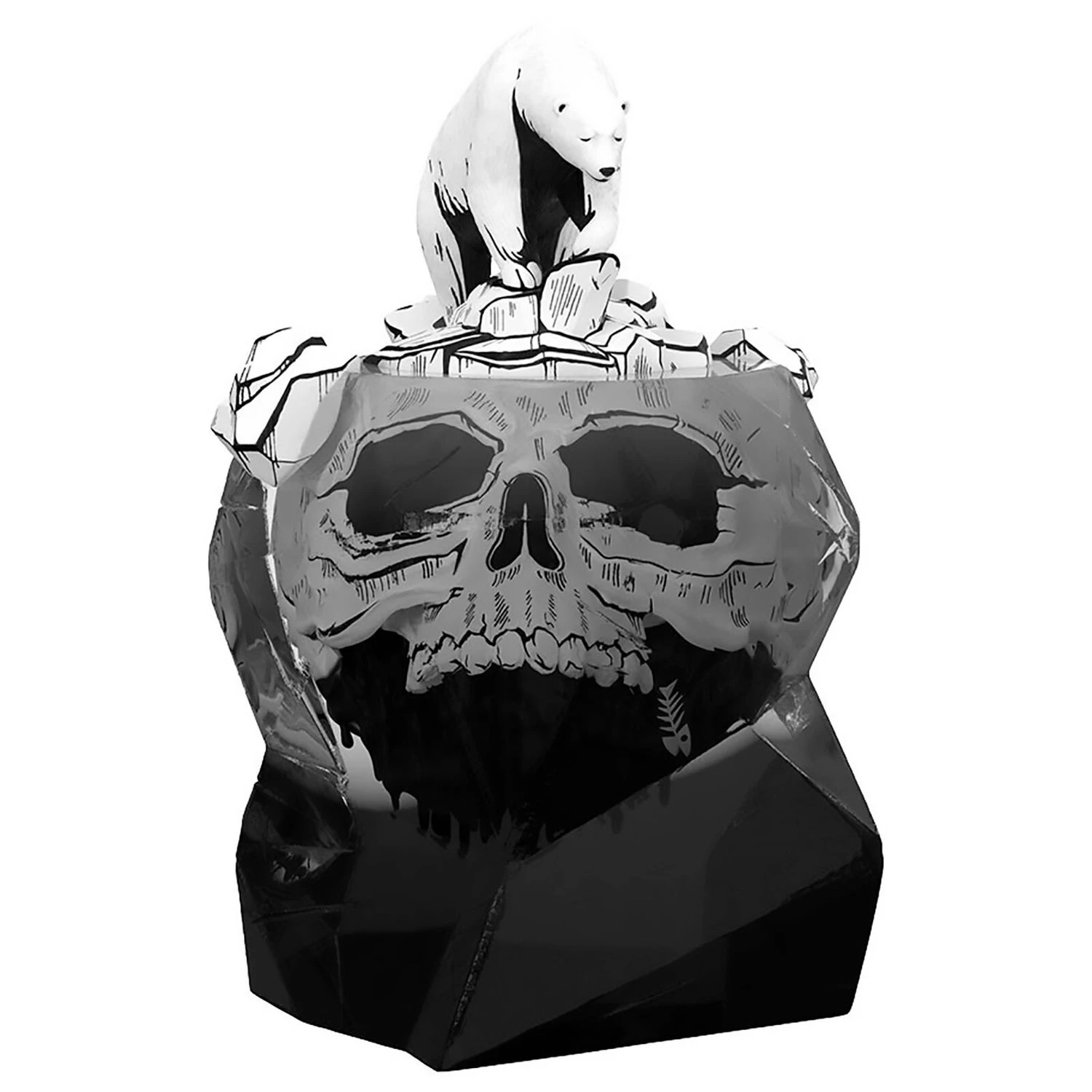 Standing 8 inch tall, this thought-provoking piece with artist Kerby Rosanes is made from polystone. The layers of the piece are achieved through a double casting method whereby the opaque skull and bear are cast within the ice.